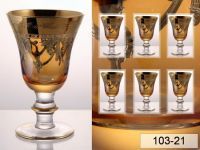 НАБОР ФУЖЕРОВ ДЛЯ ВИНА ИЗ 6 ШТ СТЕКЛО АМБЕР, ДЕКОР.ЗОЛОТОМ, СИН.ПОДАРОЧ.УПАКОВ (