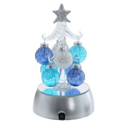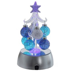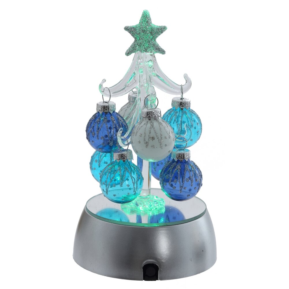 Елочка ГОЛУБАЯ из стекла с шарами и подсветкой 15 см
