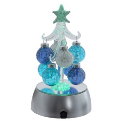 Елочка ГОЛУБАЯ из стекла с шарами и подсветкой