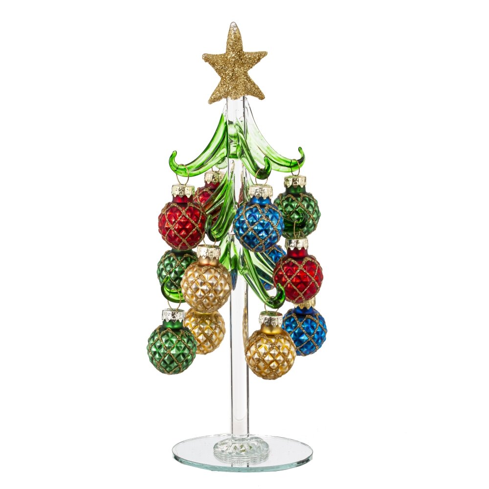 Елочка из стекла с шарами 13 см
