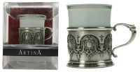 Подарочный набор для кофе Средневековый узор (олово 95%, фарфор) 11см, 100 мл