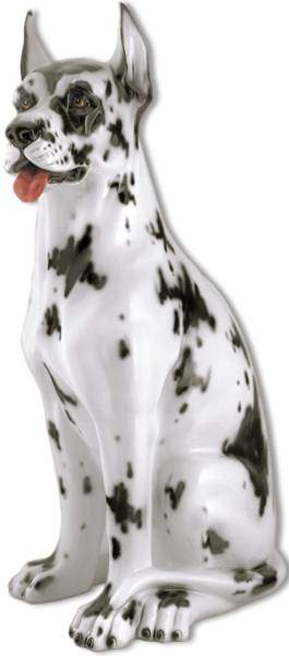 Статуэтка НЕМЕЦКИЙ ДОГ с мраморным окрасом, характерным для данной породы. Фигура ростовая, идентична размеру живого взрослого дога. Красивый гигант с добрым и миролюбивым характером и развитым интеллектом – так говорят про собак этой породы.