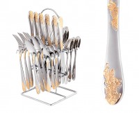 СТОЛОВЫЙ НАБОР НА ХРОМ.ПОДСТАВКЕ, 25 ПР: 6 ВИЛОК, 6 ЛОЖЕК, 6 НОЖЕЙ, 6 ЧАЙНЫХ ЛОЖЕК 15*16*30 СМ.